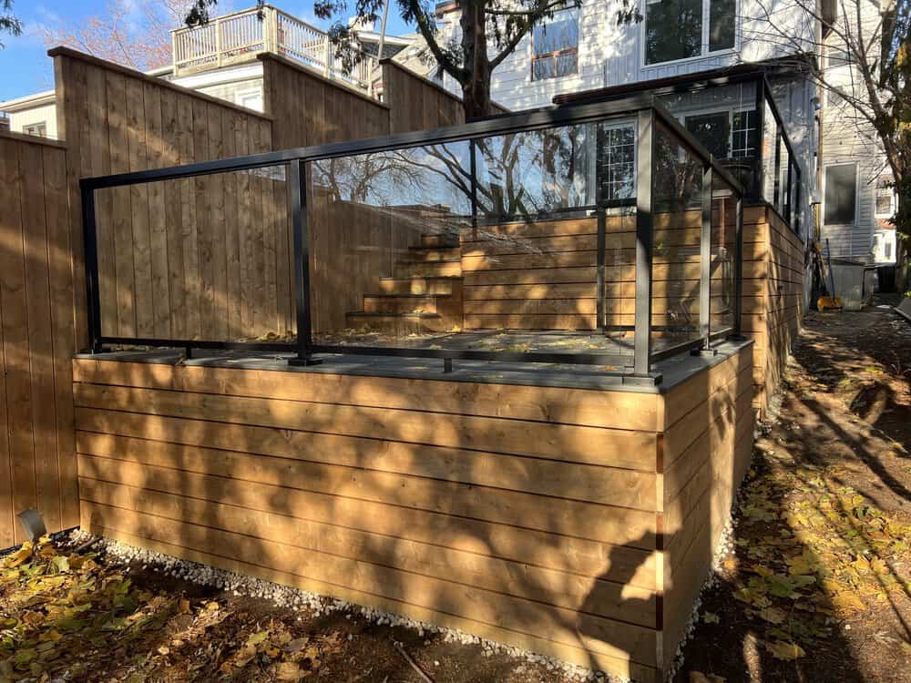Glass railings were installed to create a clean, open look while maintaining safety and visibility.
